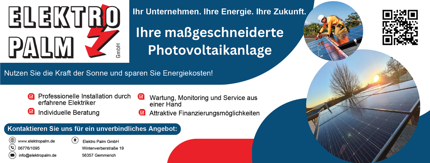 Seit der Gründung 1979 steht Elektro Palm für individuelle Beratung und effiziente Lösungen rund um Elektrotechnik, Elektroheizung im Rhein-Lahn-Kreis, im Rhein-Main-Gebiet und zwischen Rhein und Mosel. Das Familienunternehmen mit Sitz in Gemmerich wird mittlerweile in zweiter Generation von Björn Palm geführt und betreut Privatkunden und Unternehmen im Raum Frankfurt und Wiesbaden ebenso wie rund um Limburg und Koblenz.